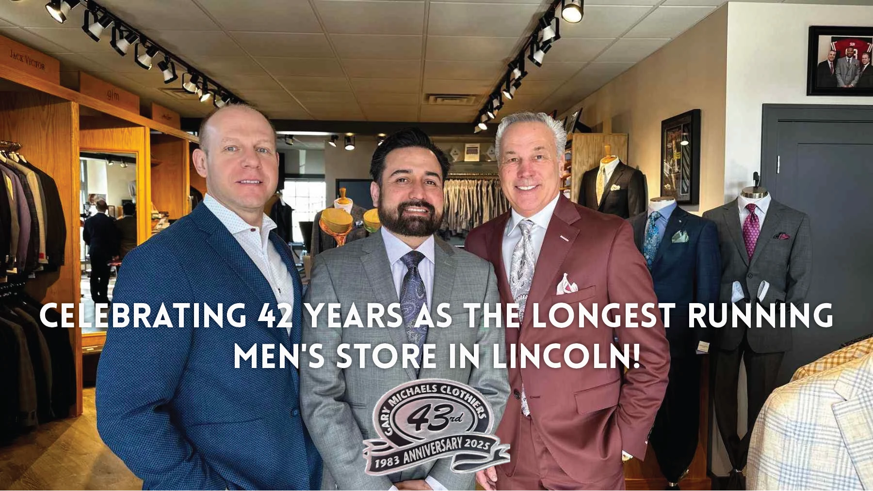 Today, we celebrate 41 years making the finest men’s suits, marking us as the longest standing men’s clothing store in Lincoln, NE – an accomplishment worth celebrating!